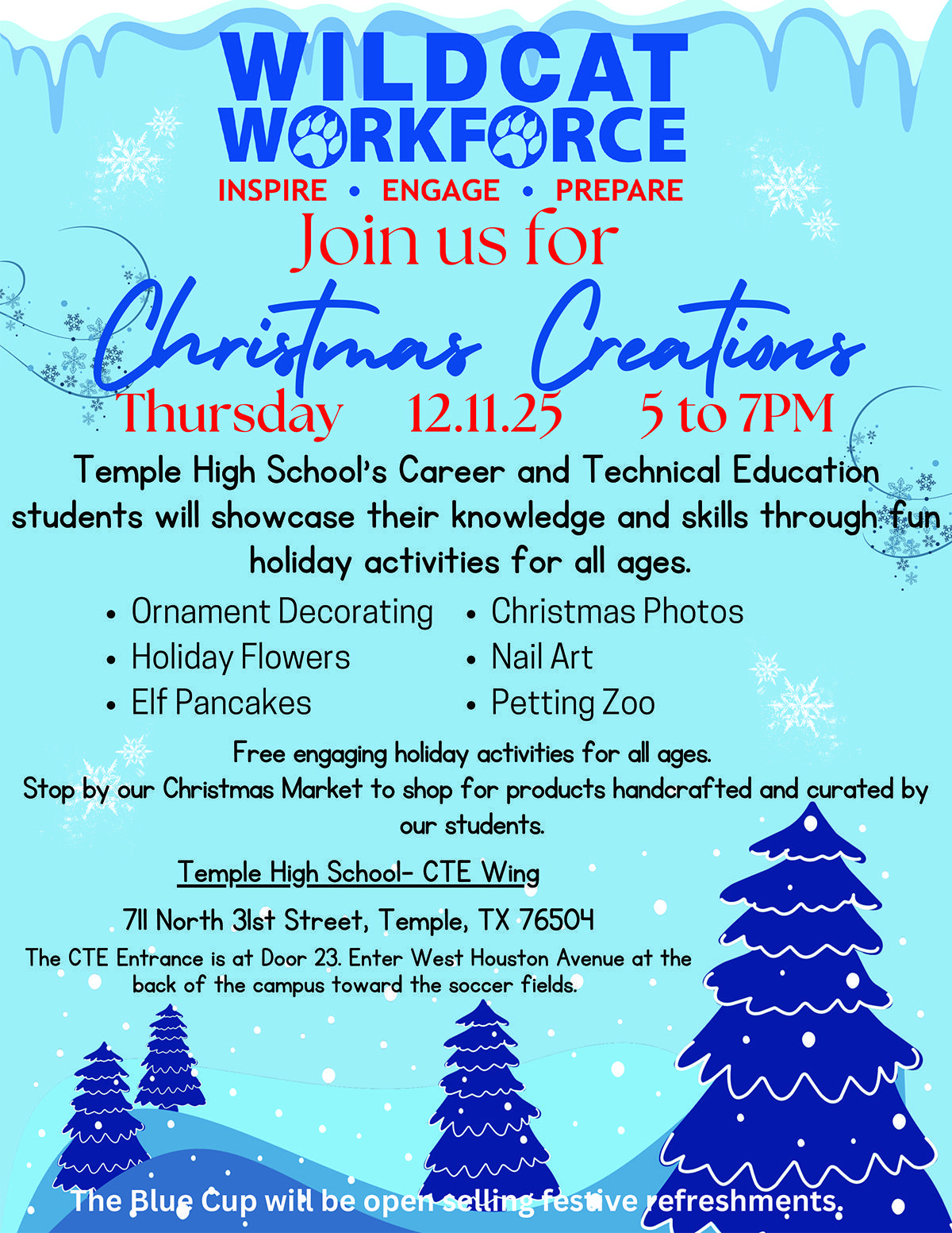 TEMPLE, Texas — The Temple Independent School District Career and Technical Education (CTE) Department will host its sixth annual Christmas Creations event on Thursday, December 11th, from 5:00-7:00 p.m. in the CTE wing of Temple High School (415 N. 31st Street, Temple, Texas 76504).