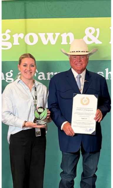 There are three different tiers of recognition through the Farm Fresh Challenge depending on the level of participation by a school district. The “Cream of the Crop” designation represents the highest tier of recognition a school district can achieve. Temple ISD was presented with the award during the Texas Association of School Nutrition (TASN) MegaCon Conference.